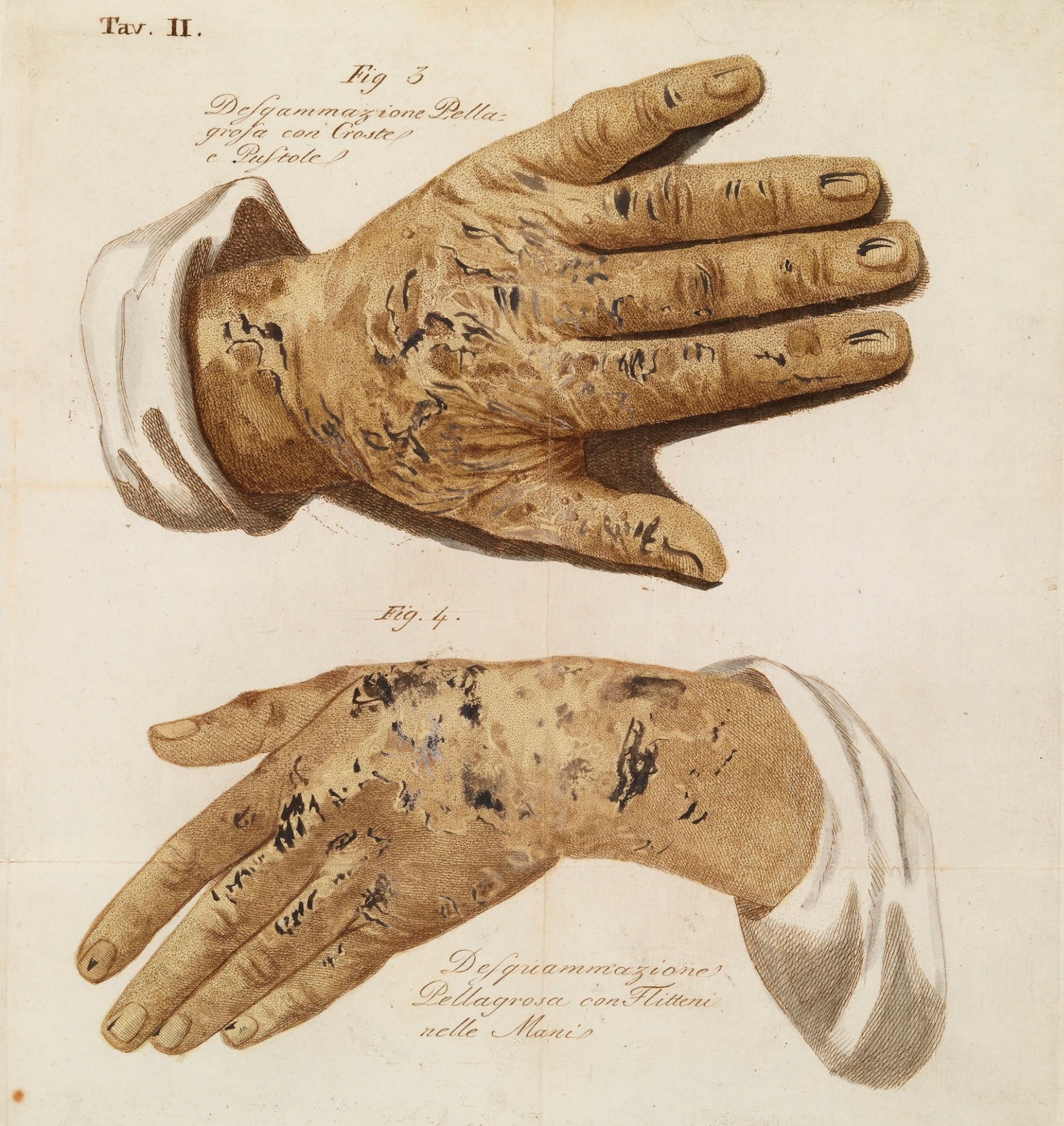 La pellagre, liée à la carence en niacine (vitamine B3 autrefois appelée vitamine PP pour Pellagra Preventive), est une maladie rare qui se retrouve le plus souvent dans les pays pauvres ou chez les consommateurs excessifs chroniques. Elle provoque des lésions cutanées (peau sèche à l'aspect craquelée), une diarrhée chronique et une démence. La pellagre se traite avec un apport en vitamine B3.